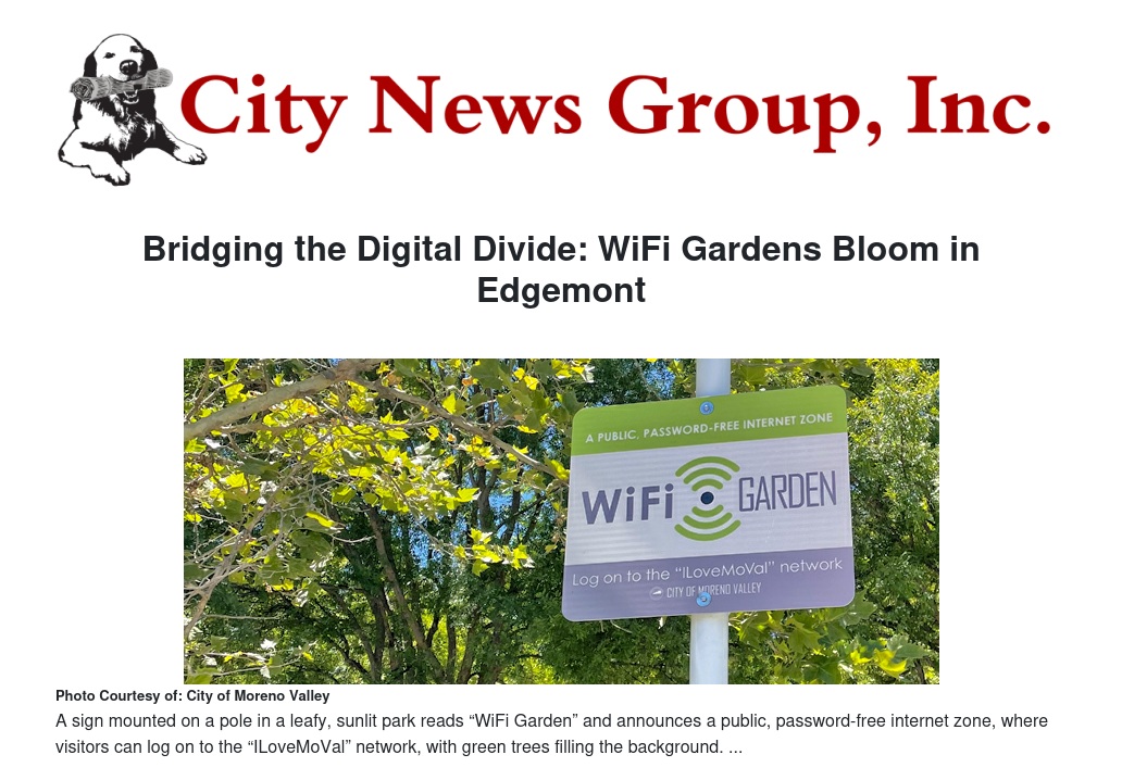 “Access to reliable internet is essential for education, job searches, small businesses, and staying connected with loved ones,” said Mayor Ulises Cabrera. “By expanding our WiFi Gardens in this Edgemont corridor, we are continuing to invest in digital equity and opportunity for Moreno Valley families.”