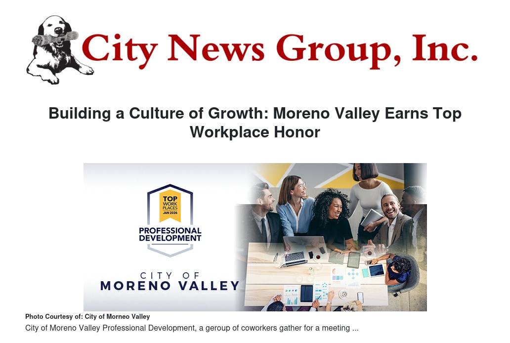 Building a Culture of Growth: Moreno Valley Earns Top Workplace Honor by Stella Pierce - City News Group, Inc.