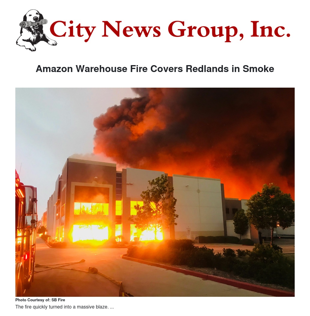 Around 7:30 am, San Bernardino County Fire reported that they were assisting the Redlands Fire Department in a three-alarm commercial structure fire at the Amazon Distribution Center.