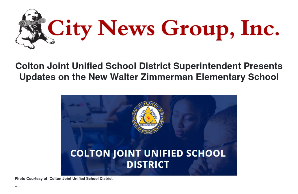 On February 7, Colton Joint Unified School District (CJUSD) Superintendent Dr. Frank Miranda presented an update on the new state-of-the-art Walter Zimmerman Elementary School project at the Bloomington Municipal Advisory Committee meeting. The project was made possible through months of negotiations between CJUSD and Howard Industrial Partners concerning the planned Bloomington Business Park project located between Jurupa Avenue and Santa Ana Avenue in Bloomington.