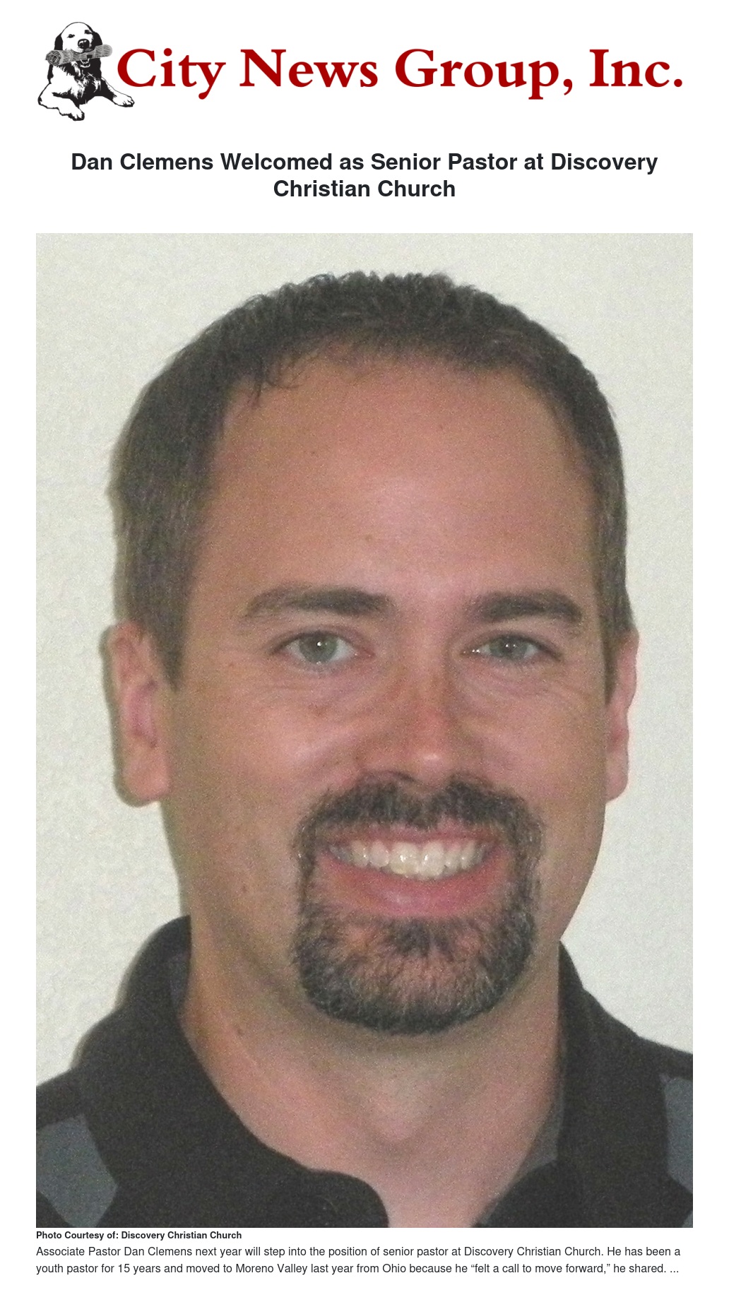 Dan Clemens will step into the role as Discovery Christian Church’s senior pastor next year upon the official retirement of current senior pastor, Bob Mink.