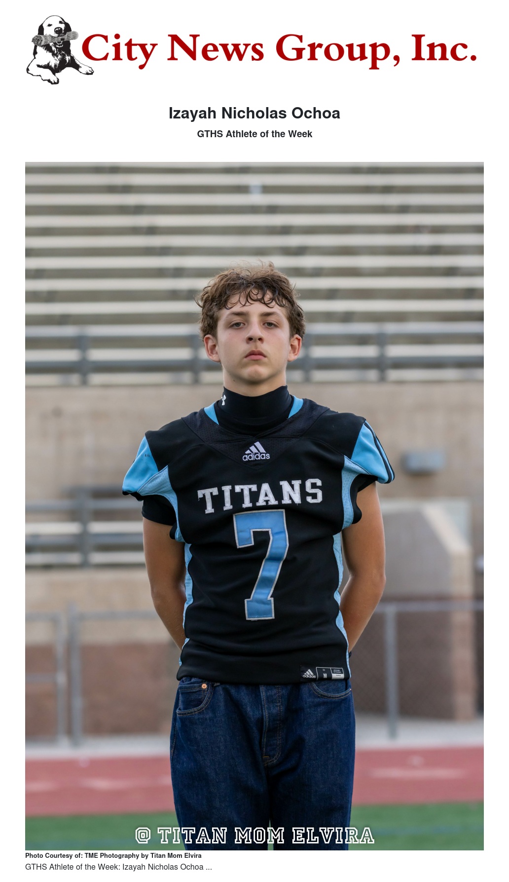 When asked what inspires him, Izayah credits his older brother, "My big brother, Christian Ochoa, has been a huge influence in my life. He showed me what it takes to be a leader on and off the field. He played for this school and continues to encourage me as I play in high school.” Christian also attended GTHS and as I like to say, “Once a Titan, Always a Titan.”