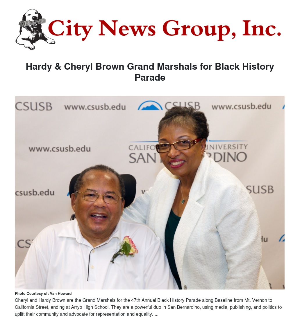 “We are honored and excited to welcome Hardy and Cheryl Brown as the Grand Marshals of the 47th Annual Black History Parade,” said Black Cultural Foundation President Carl M. Dameron. “The Browns’ contribution to the Inland Empire helped create the political and economic diversity we enjoy today.