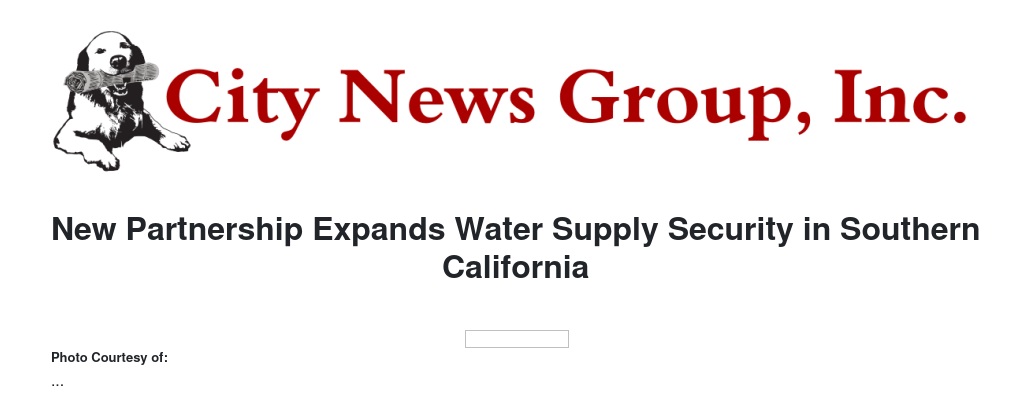 New Partnership Expands Water Supply Security in Southern California by Ruby Stephenson - City News Group, Inc.
