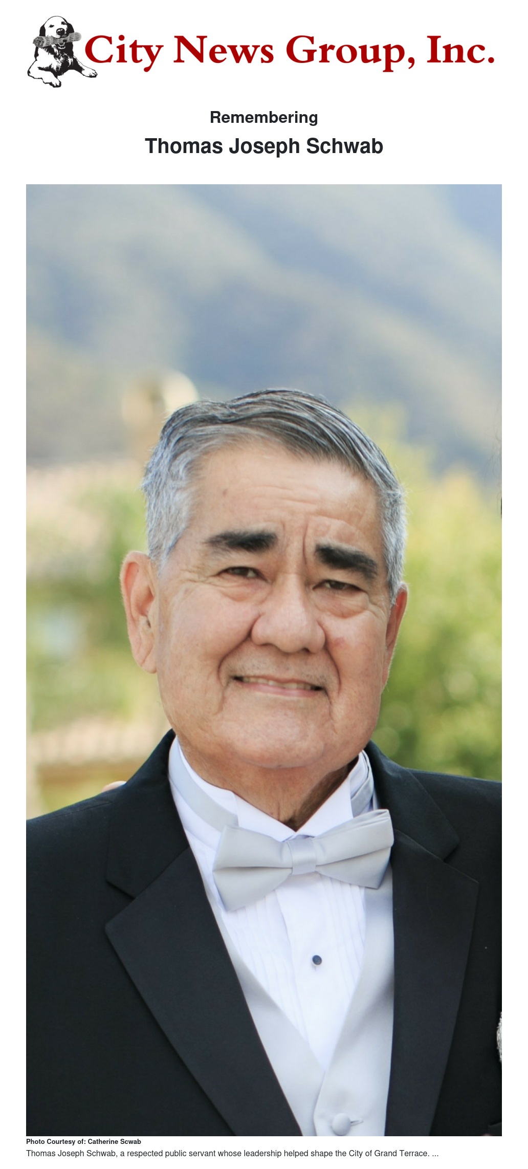 Thomas Joseph Schwab, a respected public servant whose leadership helped shape the City of Grand Terrace for more than two decades, passed away on December 13, 2025, at the age of 68.