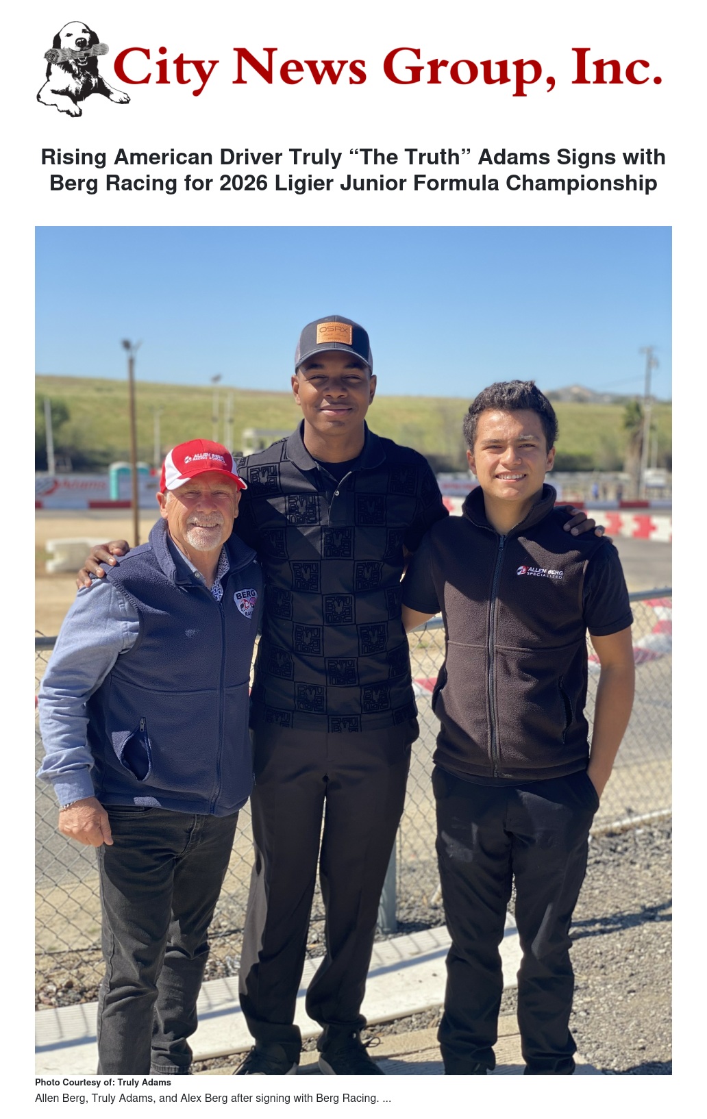 Fifteen-year old driver Truly “The Truth” Adams has signed with Berg Racing and will compete in the 2026 Ligier Junior Formula Championship, marking his entry into one of the sport’s most competitive development environments.