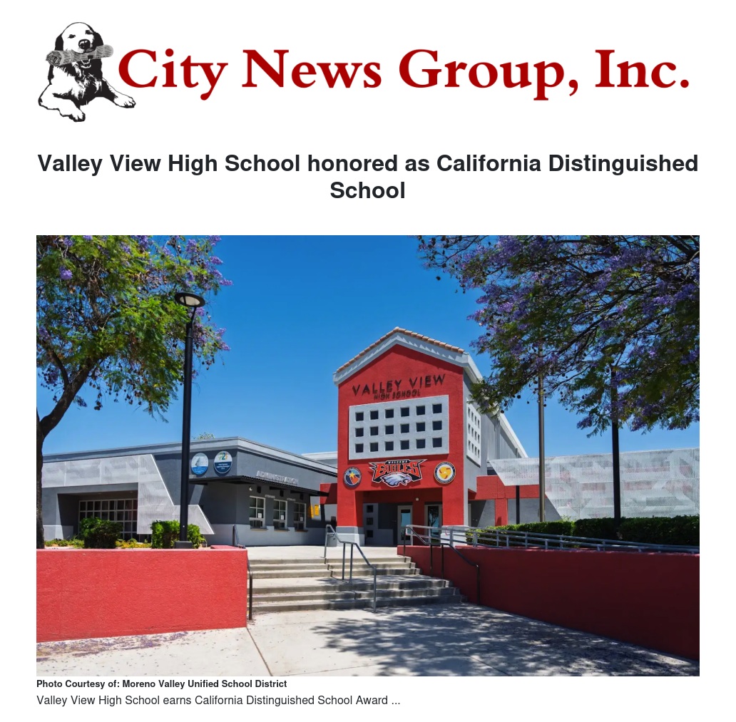 Valley View High School honored as California Distinguished School by Anahi Velasco - City News Group, Inc.