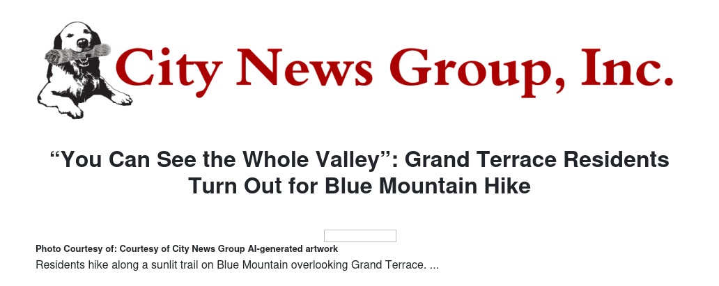 The Blue Mountain hike has become a signature Grand Terrace activity, reinforcing the city’s identity as a community that values both outdoor recreation and neighborhood connection.