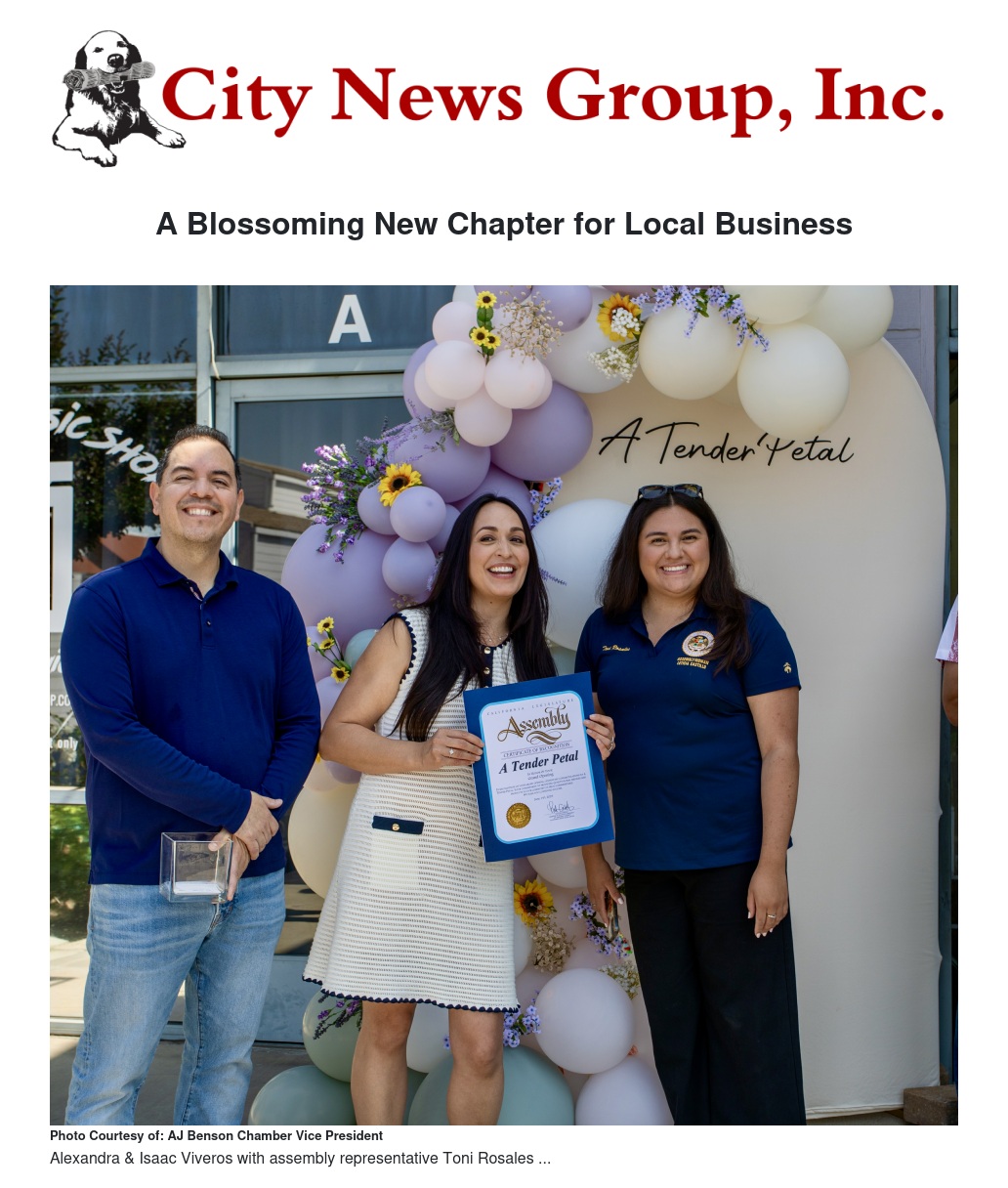 “We are beyond proud to welcome Tender Petal to Grand Terrace,” said a Chamber spokesperson. “Their creativity and commitment to quality bring fresh new vibes to our city, and we know they’ll flourish here.” -Chamber President states