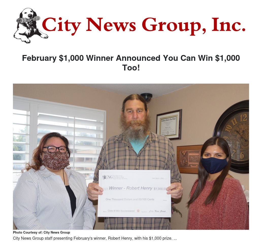 February $1,000 Winner Announced You Can Win $1,000 Too! by City News Group - City News Group, Inc.