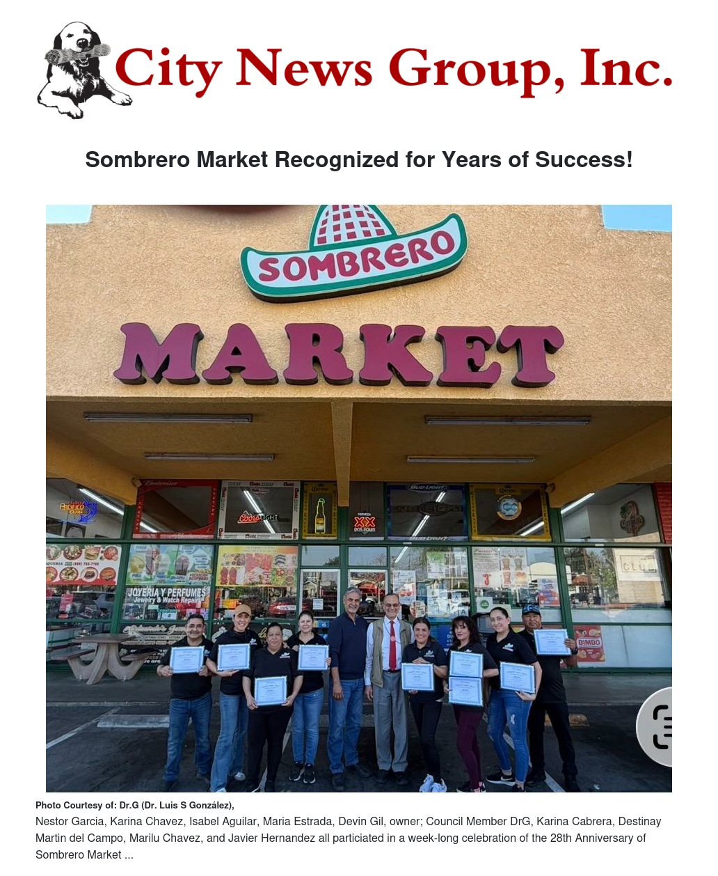 Sombrero Market Recognized for Years of Success! by Dr.G (Dr. Luis S González), - City News Group, Inc.