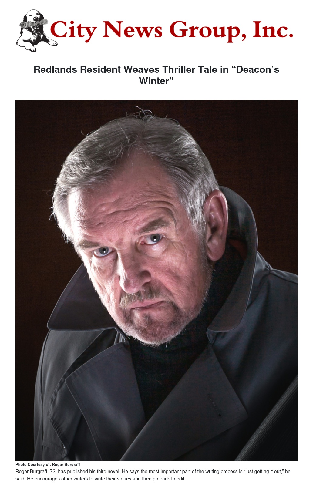 Redlands resident Roger Burgraff did not set out in his early years to be a writer, but at the age of 72, he now has three published books under his belt. As an internationally known public speaker, Burgraff, who has lived in Redlands for 32 years, spends his time traveling the world, speaking on communication, and writing thrillers.