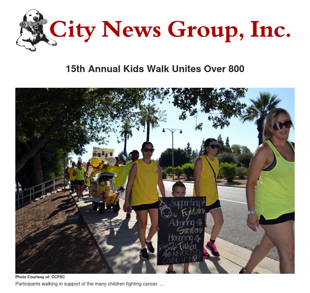 On Sunday Sept. 14 Childhood Cancer Foundation of Southern California (CCFSC) hosted its 15th Annual Kids Walk.