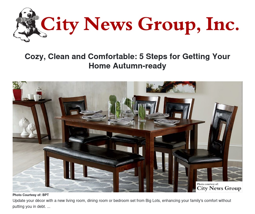 3. Update your décor with a new living room, dining room or bedroom set from Big Lots, enhancing your family's comfort without putting you in debt. The stylish designs, rich finishes and up-to-date color palettes of the brand's new collections can help create a cozy atmosphere that encourages your family to relax indoors together this fall and winter.