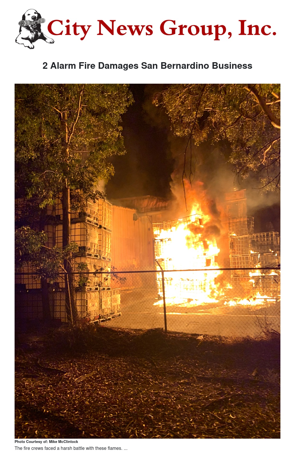 2 Alarm Fire Damages San Bernardino Business by Mike McClintock - City News Group, Inc.