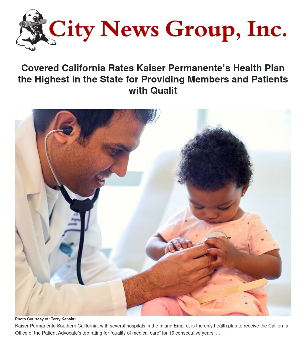 Covered California Rates Kaiser Permanente’s Health Plan the Highest in the State for Providing Members and Patients with Qualit by Terry Kanakri - City News Group, Inc.
