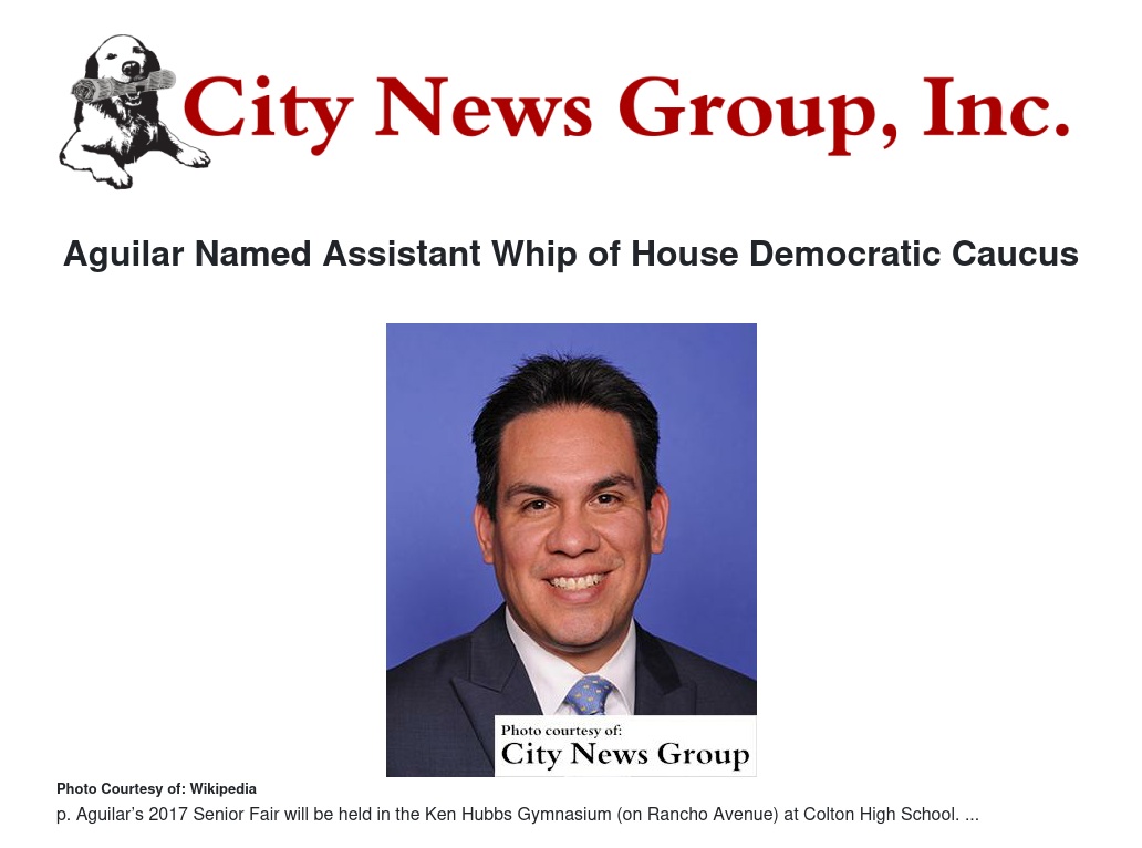 Aguilar represents California’s 31st Congressional District and currently serves on the House Armed Services and Agriculture Committees. He will also serve as the Whip of the Congressional Hispanic Caucus for the 115th Congress.