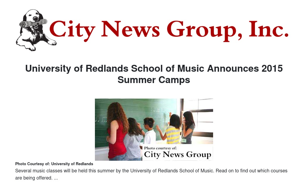 University of Redlands School of Music Announces 2015 Summer Camps