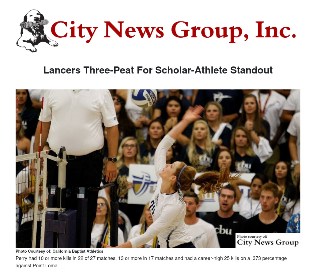 Perry gave the Lancers an All-American in 10 of the past 11 years this past season after being named a national honoree by the American Volleyball Coaches Association. The liberal studies major was a first-team selection in the West Region by the AVCA and a second-teamer in the PacWest.