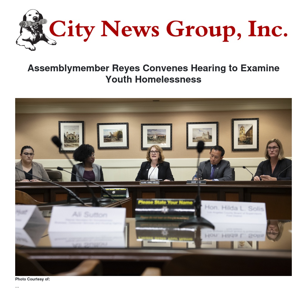 A joint hearing was convened with the Assembly Human Services Committee, Chaired by Assemblymember Eloise Reyes (D-San Bernardino) and the Committee on Housing and Community Development, chaired by Assemblymember David Chu (D-San Francisco), to highlight one of the most important issues facing the state of California today, that of youth homelessness.