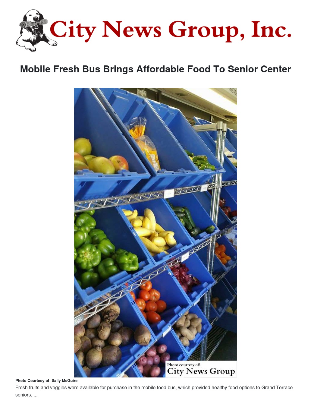 Blue Mountain Senior Villas in Grand Terrace had a surprise last Tuesday, April 27. Mobile Fresh, a bus that brings affordable and healthy food and snacks to food deserts, made its first stop in Grand Terrace at the senior center in order to provide the residents an easy access to food they might not normally purchase.