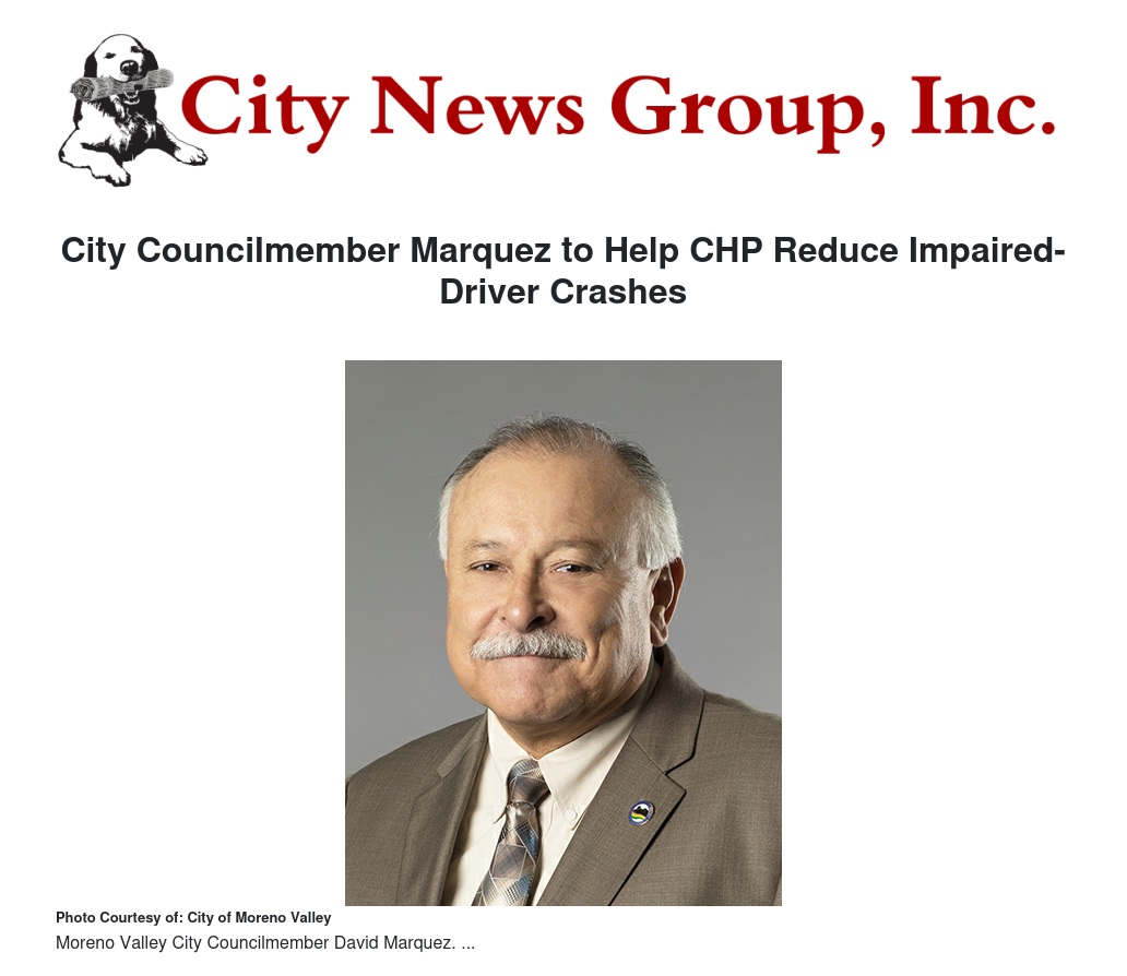 City Councilmember Marquez to Help CHP Reduce Impaired-Driver Crashes by City of Moreno Valley - City News Group, Inc.