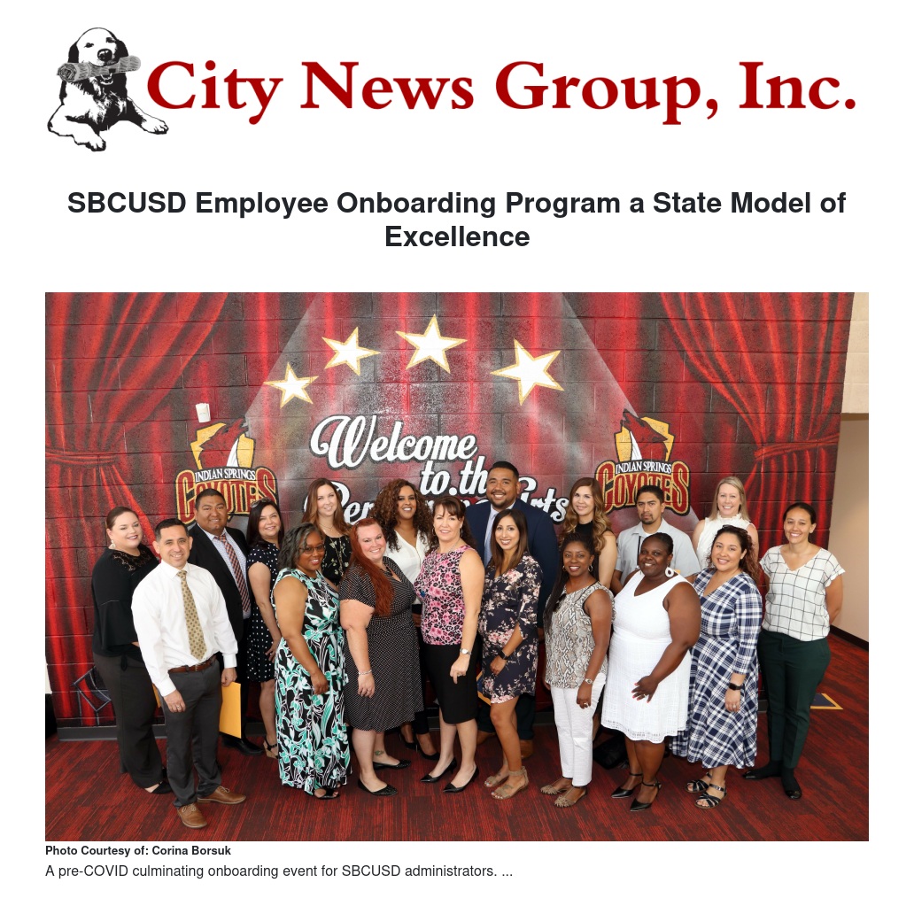 The San Bernardino City Unified School District’s (SBCUSD’s) comprehensive efforts to acclimate employees into its professional culture and values, starting with welcoming and training new hires, has earned acclaim from the California School Boards Association (CSBA).
