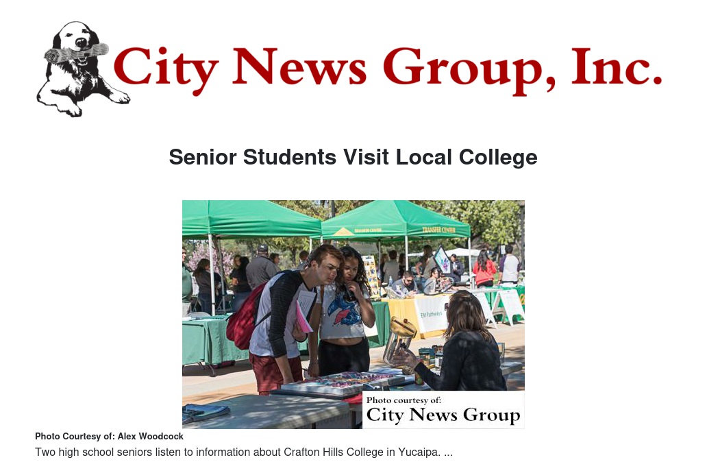 “We’re so pleased to share our beautiful campus today with over 900 area high school students,” said Kirsten Colvey, dean of counseling at Crafton Hills College. “The students learn about our unique academic programs, attend workshops on financial aid and other student support services. Hopefully, they leave here with a better understanding on the benefits of attending college.”