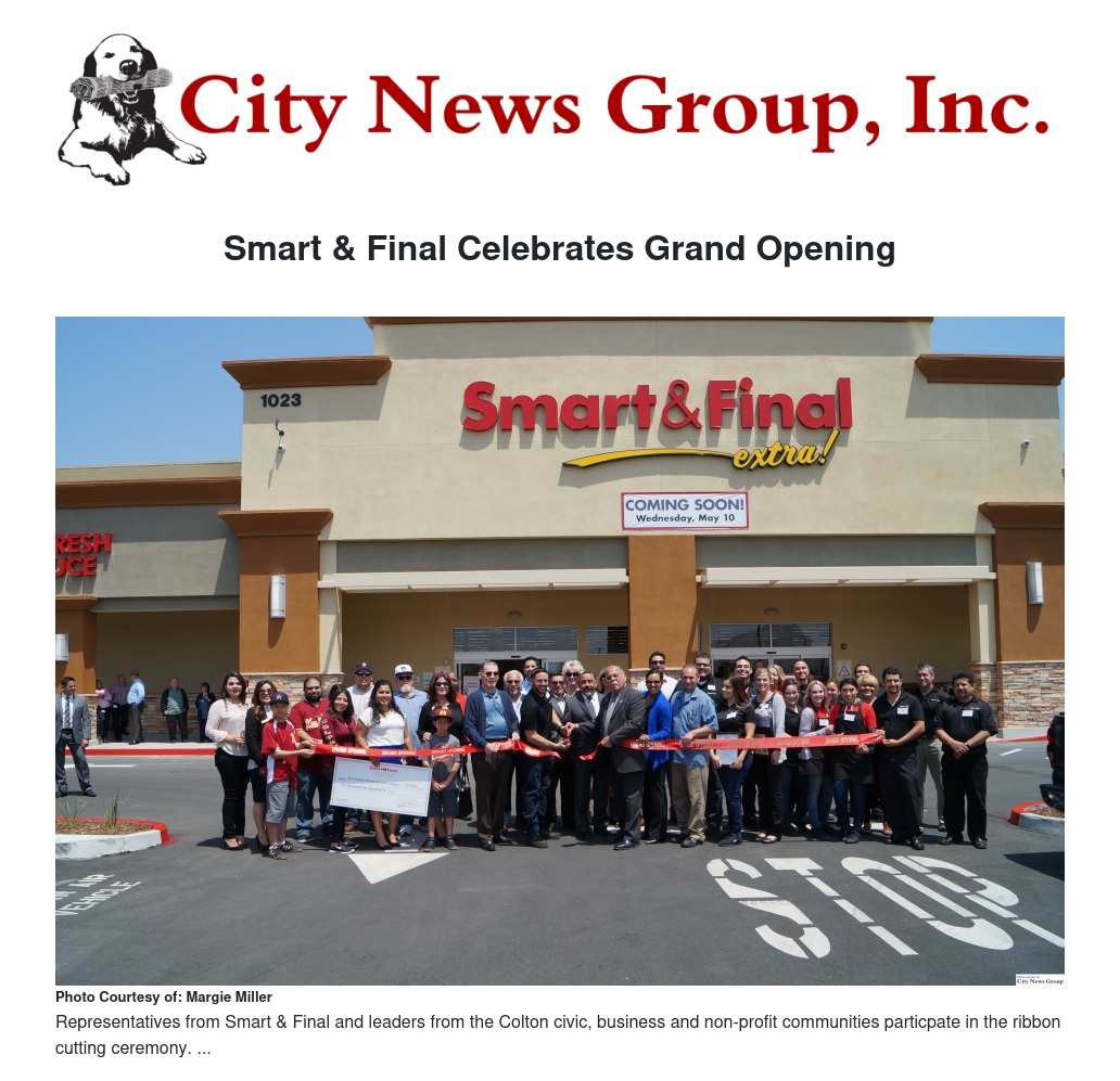 COLTON>> A crowd of nearly 100 gathered on Wednesday, May 10, to celebrate the grand opening of the new Smart & Final Extra! store, located at 1023 N. Mt. Vernon Ave.