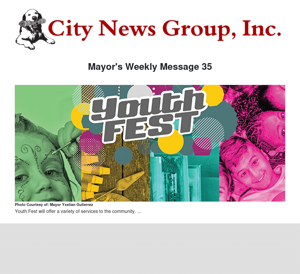 Mayor's Weekly Message 35 by Mayor Yxstian Gutierrez - City News Group, Inc.