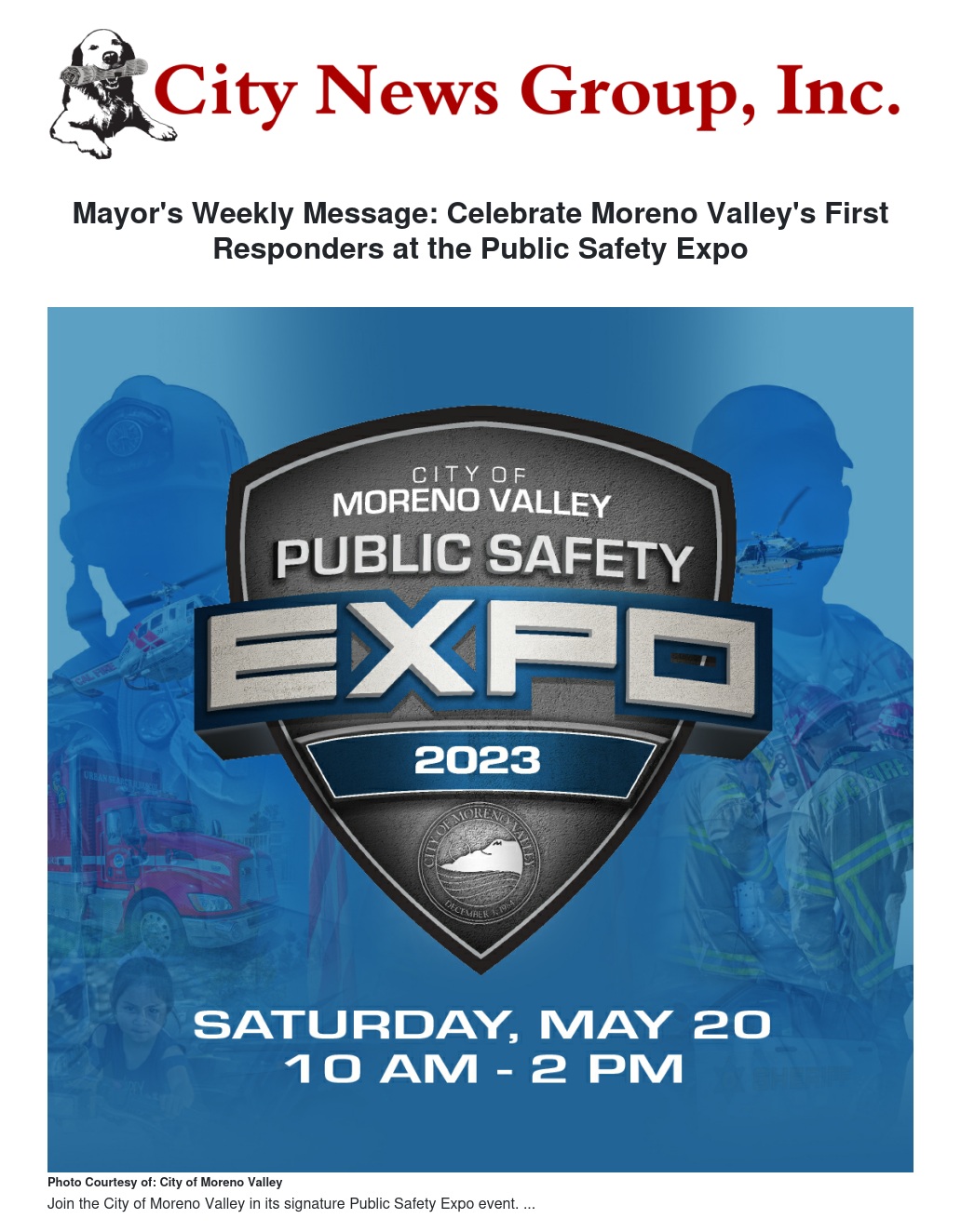 Mayor's Weekly Message: Celebrate Moreno Valley's First Responders at the Public Safety Expo by Ulises Cabrera - City News Group, Inc.