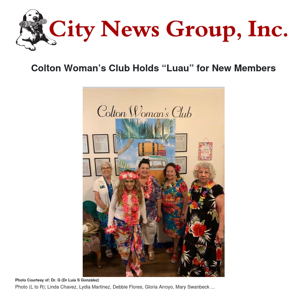 Colton Woman’s Club Holds “Luau” for New Members by Dr. Luis S Gonzalez - City News Group, Inc.