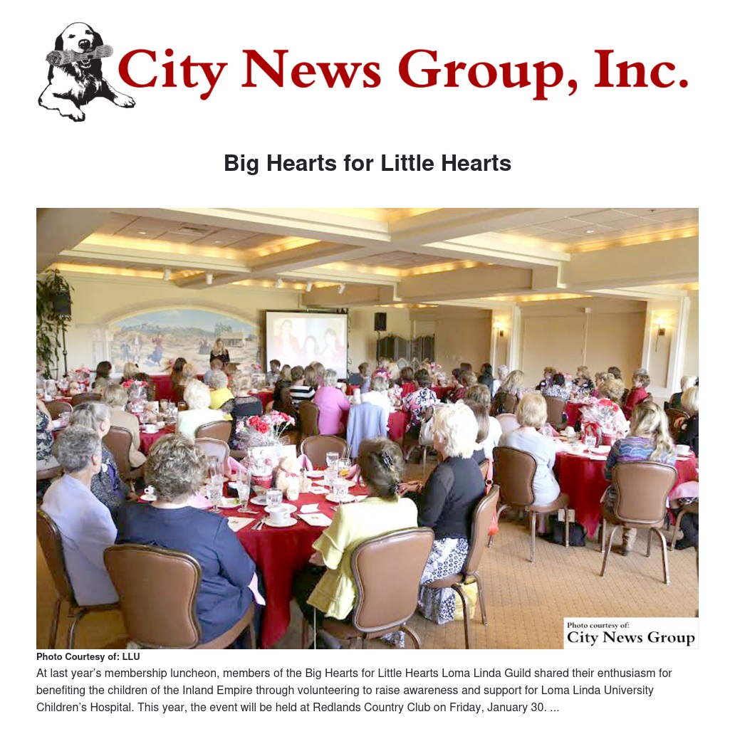 In addition to the membership luncheon, the Big Hearts for Little Hearts Loma Linda Guild will host a fashion show at the Burrage Mansion in May and a cooking school in autumn to raise money for a variety of special projects at the hospital.