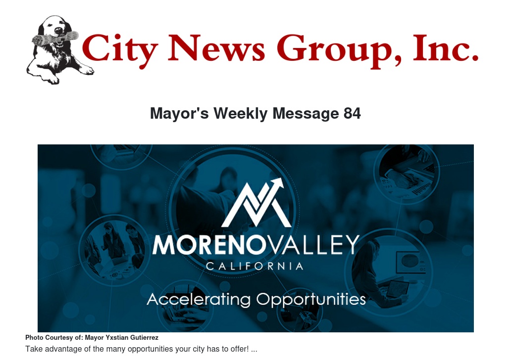 Mayor's Weekly Message 84 by Mayor Yxstian Gutierrez - City News Group, Inc.