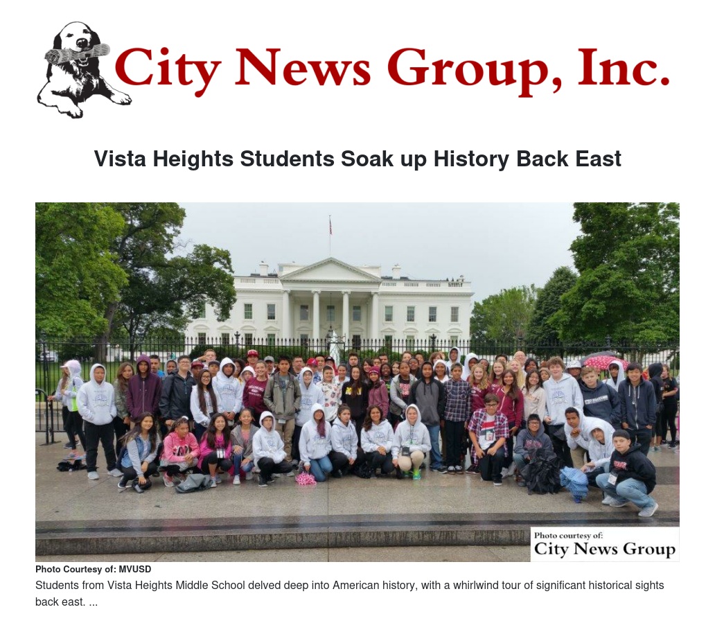 History came alive recently for students from Vista Heights Middle School, who spent a whirlwind week back east touring Boston, New York City, Philadelphia and Washington, D.C.