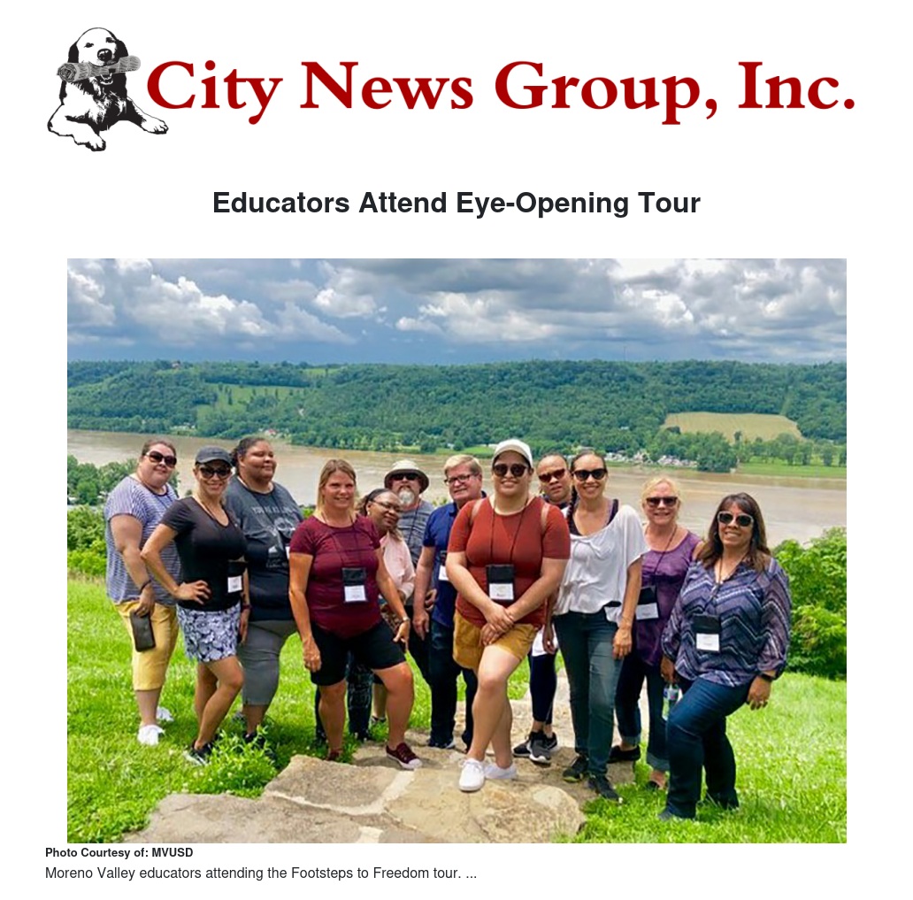 Superintendent Dr. Martinrex Kedziora, a group of Moreno Valley Unified School District educators, and Executive Director of the Moreno Valley Educators Association, Salina Joiner, are currently attending the Footsteps to Freedom tour in the Midwest. The tour follows the historic Underground Railroad where slaves escaped to freedom.