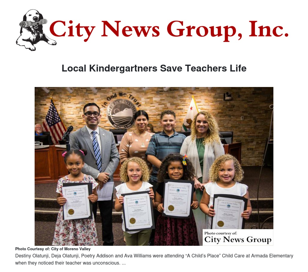 Local Kindergartners Save Teachers Life by Julia Nunez - City News Group, Inc.