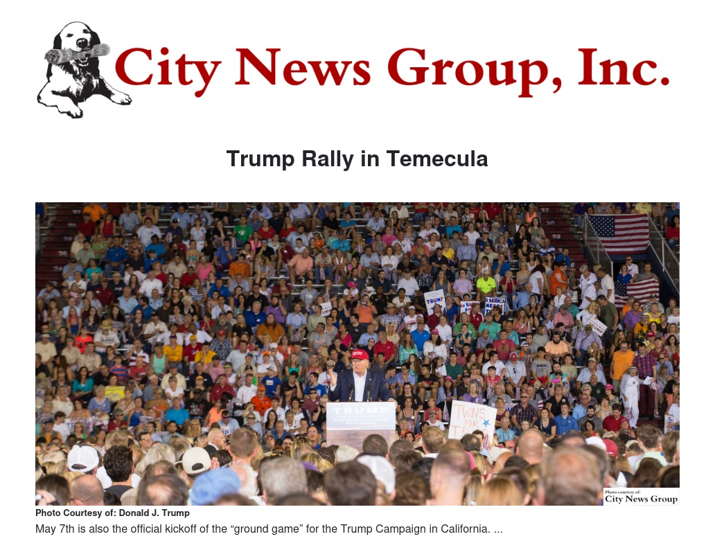 This rally has been publicized on social media throughout Southern California and we are expecting many hundreds of Trump supporters to attend. Our previous successful rally at this location on March 26 drew about 200 ralliers and was reported on by numerous SoCal media outlets.