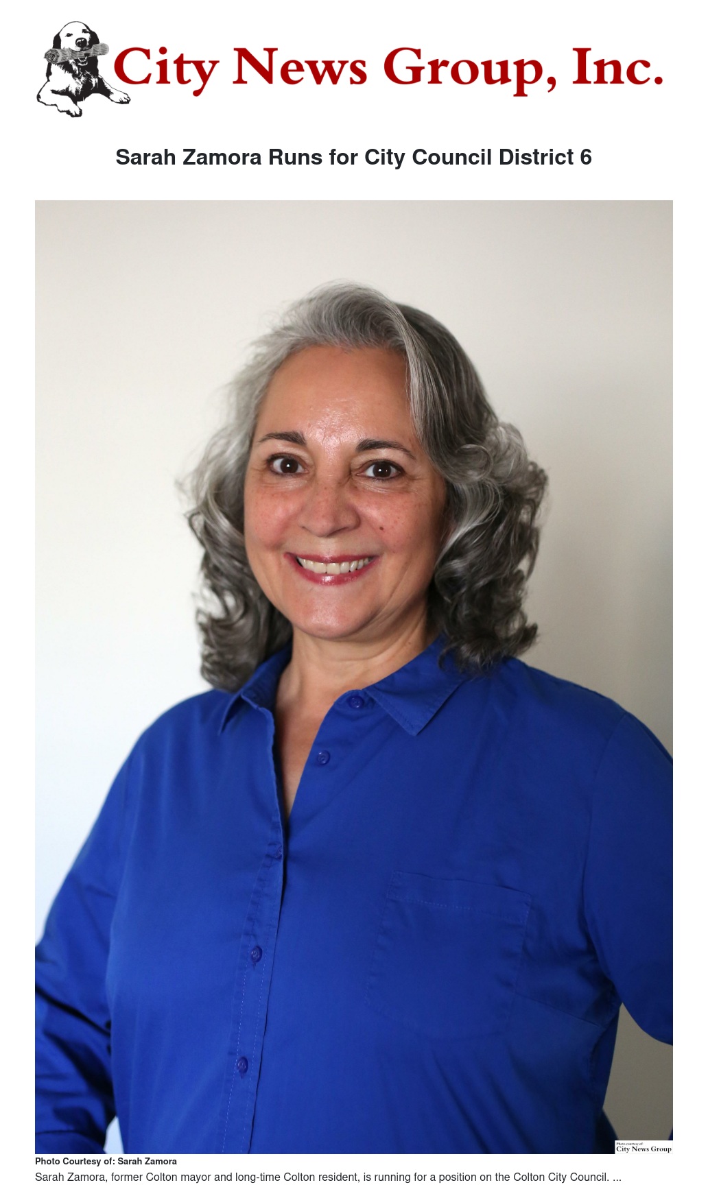 COLTON>> Sarah Zamora, former Colton mayor and long-time Colton resident, is running in the race of Colton City Council District 6.