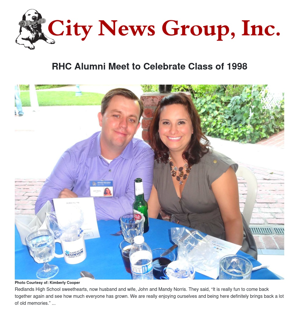 Saturday, August 10, the class of 1998 of Redlands High School gathered yet again at the Edwards Mansion located in the city of Redlands, part two of a three-day, 15-year celebration.