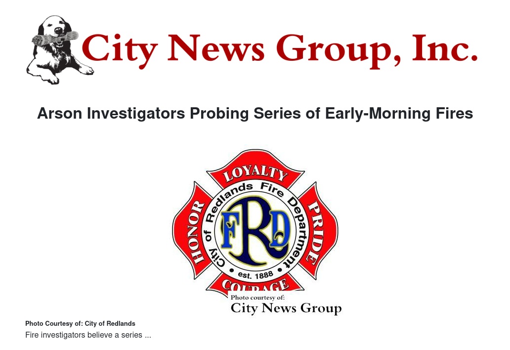 Between 1:56 a.m. and 6:51 a.m. Wednesday, Aug. 12, firefighters from Redlands, Loma Linda and San Bernardino County fire departments responded to six fires investigators believe are acts of arson. Firefighters from San Bernardino City and Colton also responded to provide additional resources if needed.