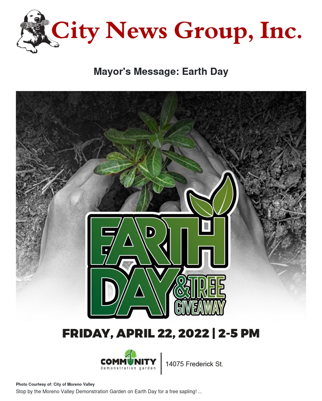 Mayor's Message: Earth Day by Mayor Yxstian Gutierrez - City News Group, Inc.