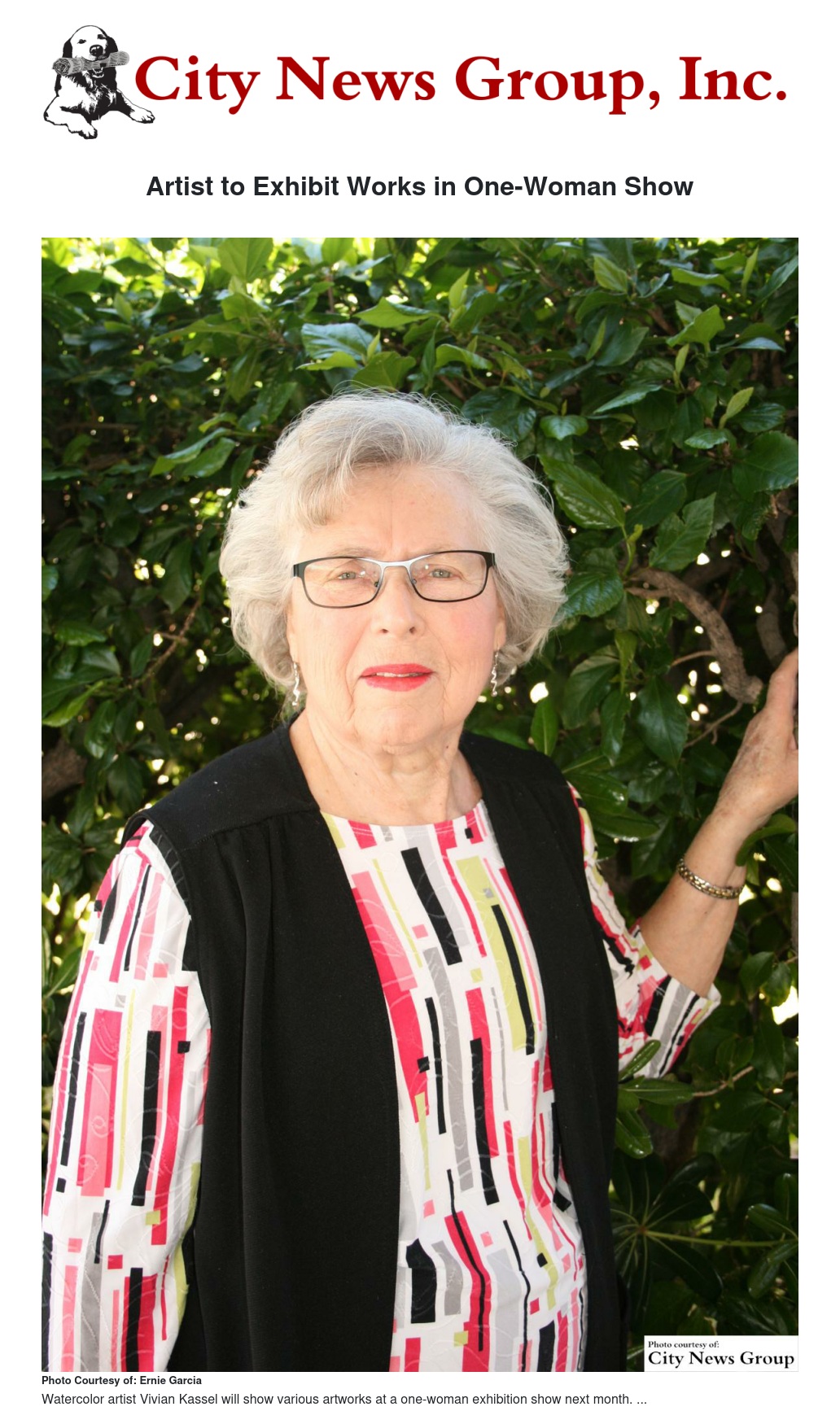 Vivian Kassel began painting when her children started school. She studied under Redlands art instructor Beryl Larkin in all media, starting with oils, moving on to acrylics and finding a niche in watercolors.