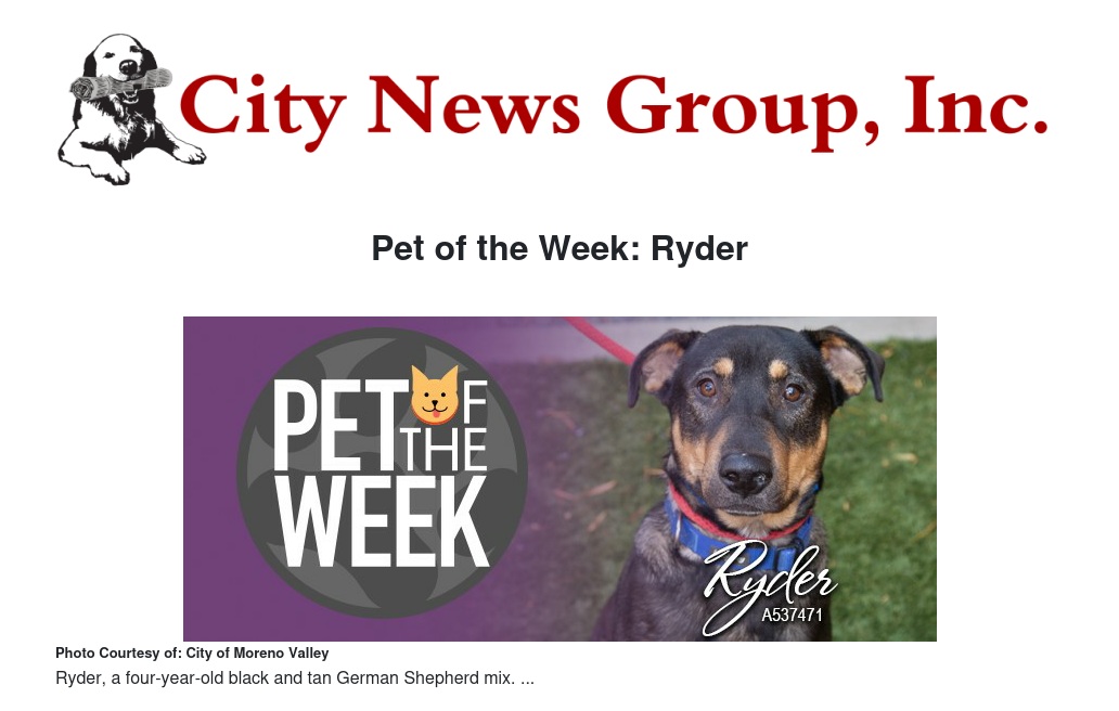 If you would like to make Ryder or any pet from the Moreno Valley Animal Shelter part of your family, please contact the Moreno Valley Animal Shelter at 951.413.3790 or visit www.moval.org/pets