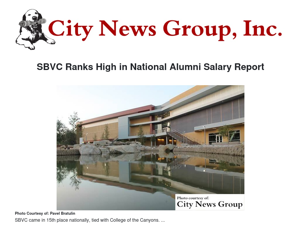 SBVC Ranks High in National Alumni Salary Report