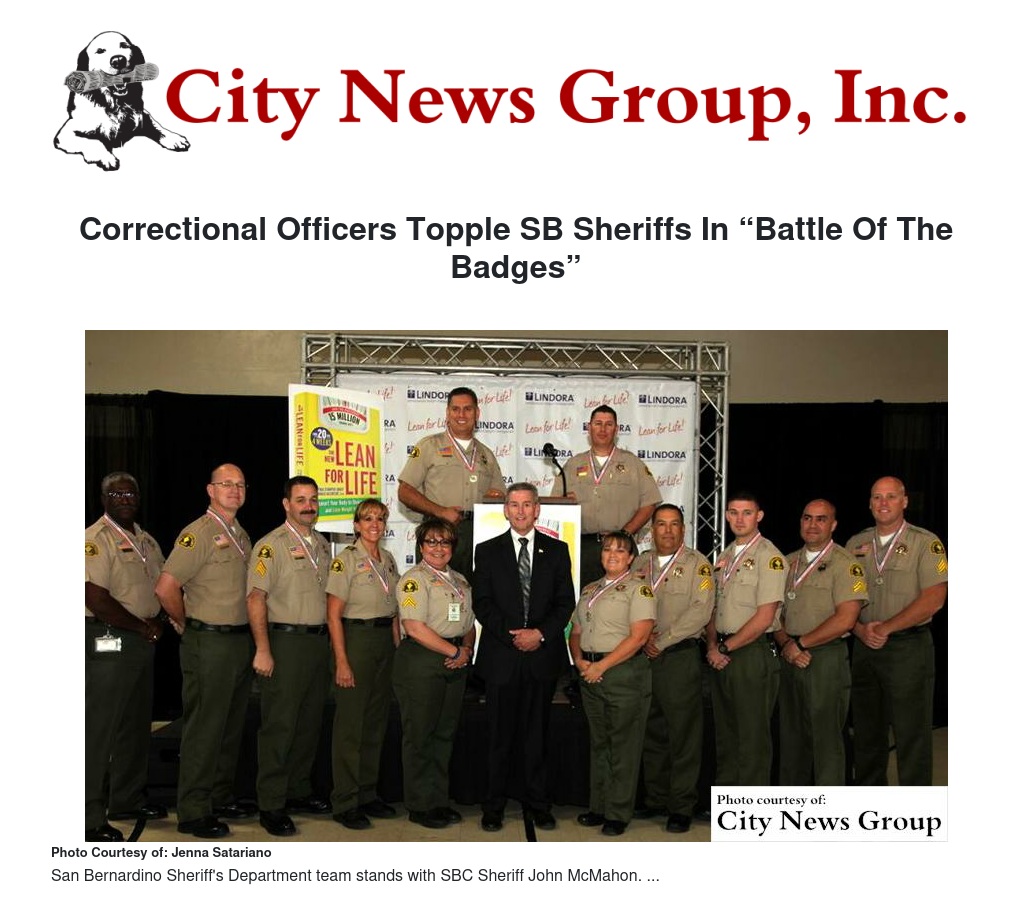 In just 10 weeks, the 26 competitors in this year’s Battle of the Badges pitting correctional officers from state penitentiary in Norco against the San Bernardino Sheriffs lost a total of 988.7 lbs, an average of 5” around the waist and a reduction in their body mass index (BMI) from 39 to 33.