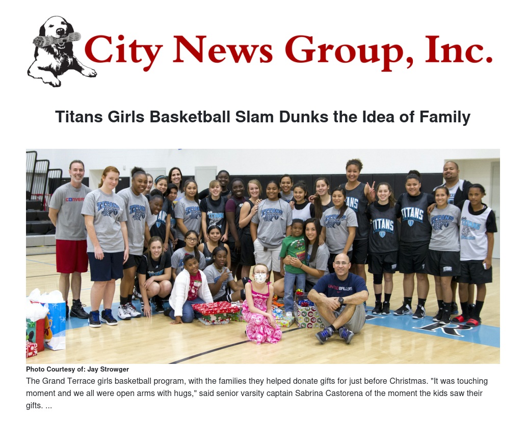 Spending countless hours together both on and off the basketball court leaves a lot of room for teammates to start thinking of each other as family. That's how Grand Terrace High School's (GTHS) girls basketball program has come to see each other - and when each of the three basketball teams pulled together to donate gifts for the holiday season to the families of two varsity teammates, it was evident the girls looked at each other as more than just fellow basketball players.