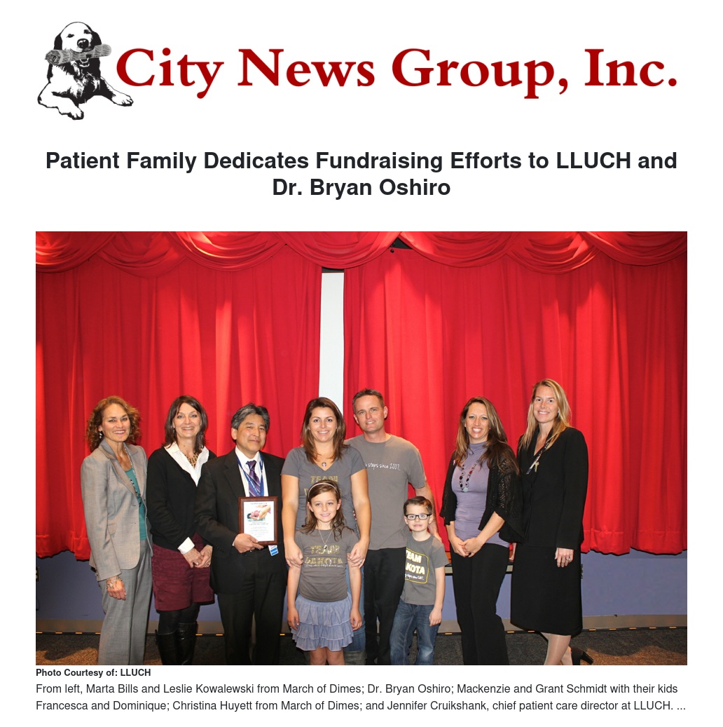 Patient Family Dedicates Fundraising Efforts to LLUCH and Dr. Bryan Oshiro