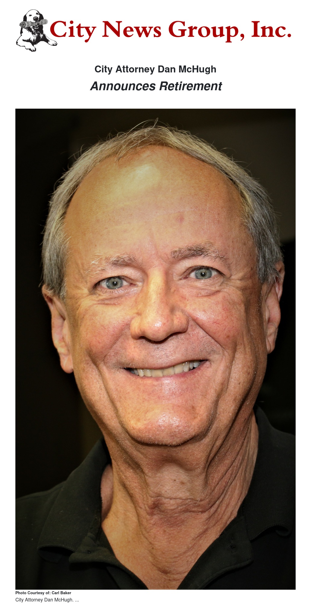After 28 years as the principal legal advisor to the City Council, the City Manager, and all City operations, Dan McHugh has announced his retirement as City Attorney, effective before the end of the fiscal year.