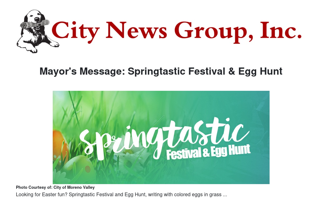 The Springtime fun continues on Saturday, April 2, when our annual Springtastic Festival & Egg Hunt returns to Sunnymead Park.